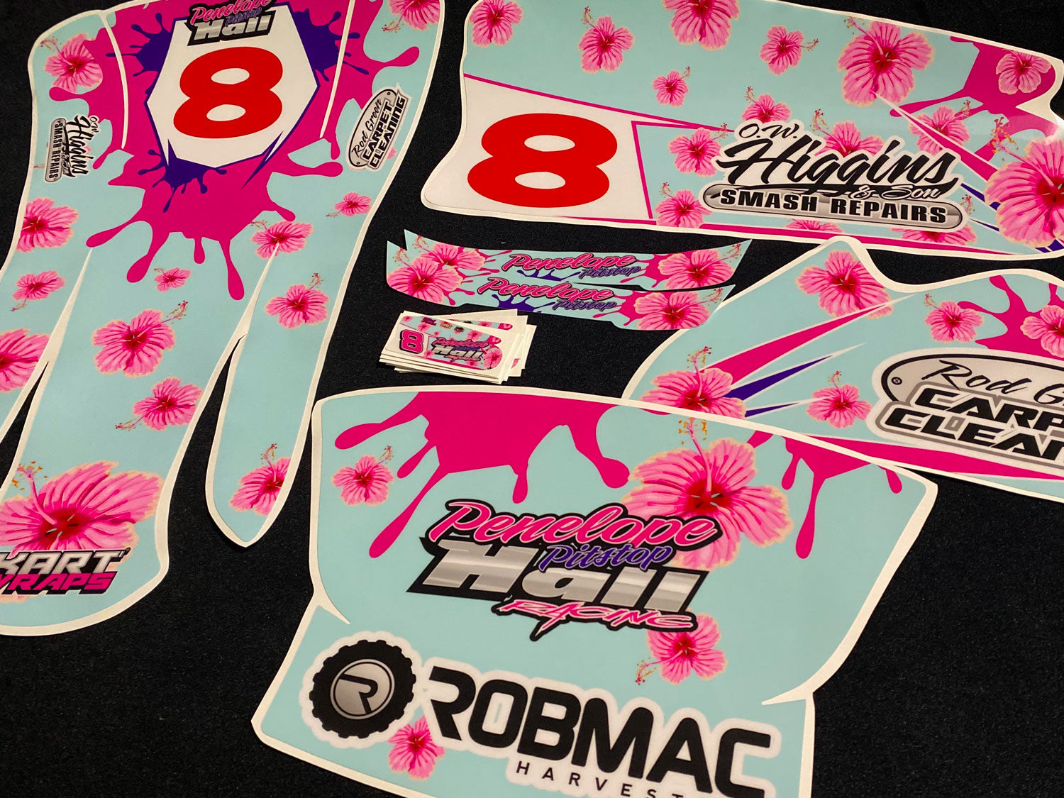 Printed on the highest-quality fluro vinyls with heavy duty laminate, these kits are built for durability, clarity and serious visual punch. If you want your kart to pop in any light and stand out from every competitor, this is your next-level design option.